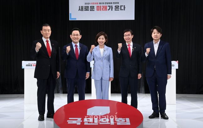 국민의힘 당대표에 출마한 주호영(왼쪽부터), 홍문표, 나경원, 조경태, 이준석 후보가 7일 오후. 오늘 저녁에 당대표 여론조사 하나 더 뜰듯 11. 윤석열 반대하던 국민의힘, 김오수 검찰총장 후보자도 무조건 반대? 누가 당 대표가 되느냐에 따라. 국민의힘 당대표 선거 마지막 현장 합동연설…'정권교체' 한목소리.